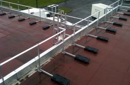 En aluminium sur plots de béton. Système de garde - corps en aluminium évitant tout perçage de toiture. Disponible en version : droite, inclinée , . A-csys – Protection chutes – garde corps . GARDE CORPS AUTOPORTANT.